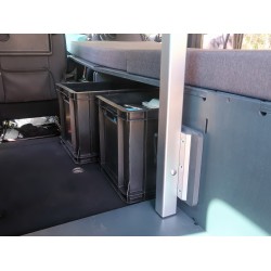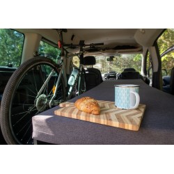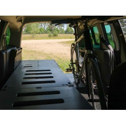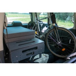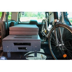 The Vacamod KombiVan Solo camping box has a base (floor) measuring 110x66cm, a bed frame 66cm wide and 199cm long. These dimensions ensure a comfortable sleep, while leaving plenty of space for luggage or even large sports equipment. You can choose which side of the trunk the box will be placed on (as viewed from the rear tailgate), allowing you to perfectly adapt the space to your needs. KombiVan Solo is compatible with most KombiVan and Van/Bus vehicles available on the market.