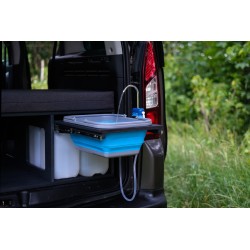 • Water pump with LED lighting - The pump can be used as a faucet at the sink or a faucet outside the car. The pipe from the pump is inserted directly into the water tank located in the car. You can also hang it higher, heat the water on the stove and have a hot water shower!