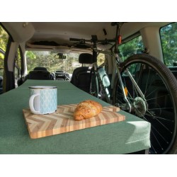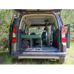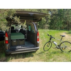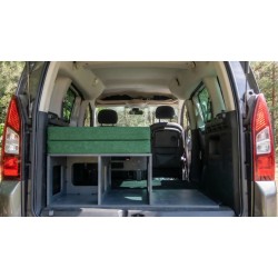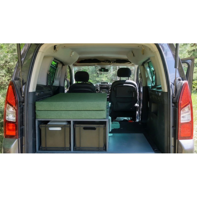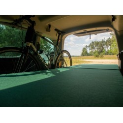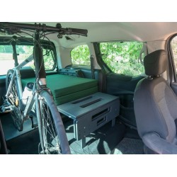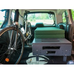The Vacamod KombiVan Solo camping box has a base (floor) measuring 110x66cm, a bed frame 66cm wide and 199cm long. These dimensions ensure a comfortable sleep, while leaving plenty of space for luggage or even large sports equipment. You can choose which side of the trunk the box will be placed on (as viewed from the rear tailgate), allowing you to perfectly adapt the space to your needs. KombiVan Solo is compatible with most KombiVan and Van/Bus vehicles available on the market.