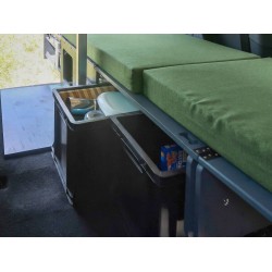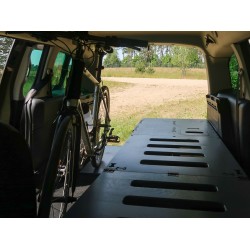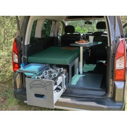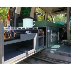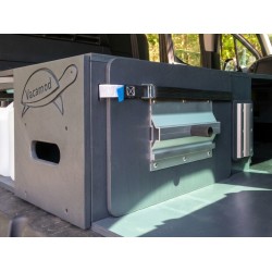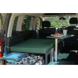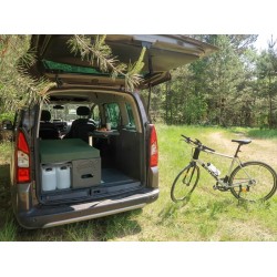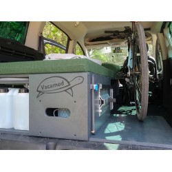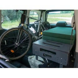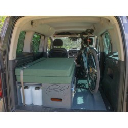 The Vacamod KombiVan Solo camping box has a base (floor) measuring 110x66cm, a bed frame 66cm wide and 199cm long. These dimensions ensure a comfortable sleep, while leaving plenty of space for luggage or even large sports equipment. You can choose which side of the trunk the box will be placed on (as viewed from the rear tailgate), allowing you to perfectly adapt the space to your needs. KombiVan Solo is compatible with most KombiVan and Van/Bus vehicles available on the market.