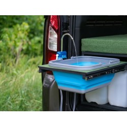 • Water pump with LED lighting - The pump can be used as a faucet at the sink or a faucet outside the car. The pipe from the pump is inserted directly into the water tank located in the car. You can also hang it higher, heat the water on the stove and have a hot water shower!