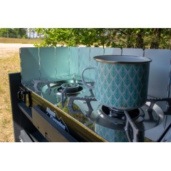 • Foldable wind curtain perfectly matched to the dimensions of the cooker and drawer for increased comfort of use and safety.